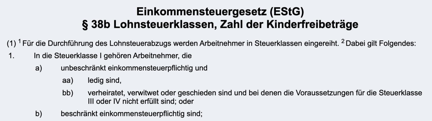 Nein, Steuerklasse 1 ist immer mit Grundfreibetrag, sonst Steuerklasse 6! §38b (1) Nr. 1b EStG lesen, siehe oben!stuntmanmike hat geschrieben: 24. Okt 2024, 07:54 gut aber wenn ich beschraenkt steuerpflicht bin, dann spielt das ja auch beim lohnsteuerabzug schon eine rolle