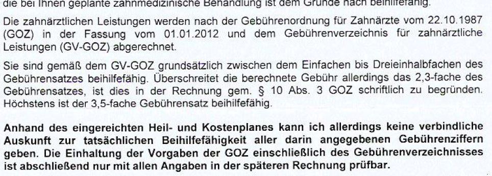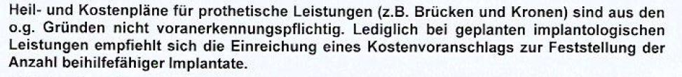 ich habe eine Frage zum Bescheid der Beihilfestelle (NRW) auf einen Kostenvoranschlag zur Implantatsbehandlung.