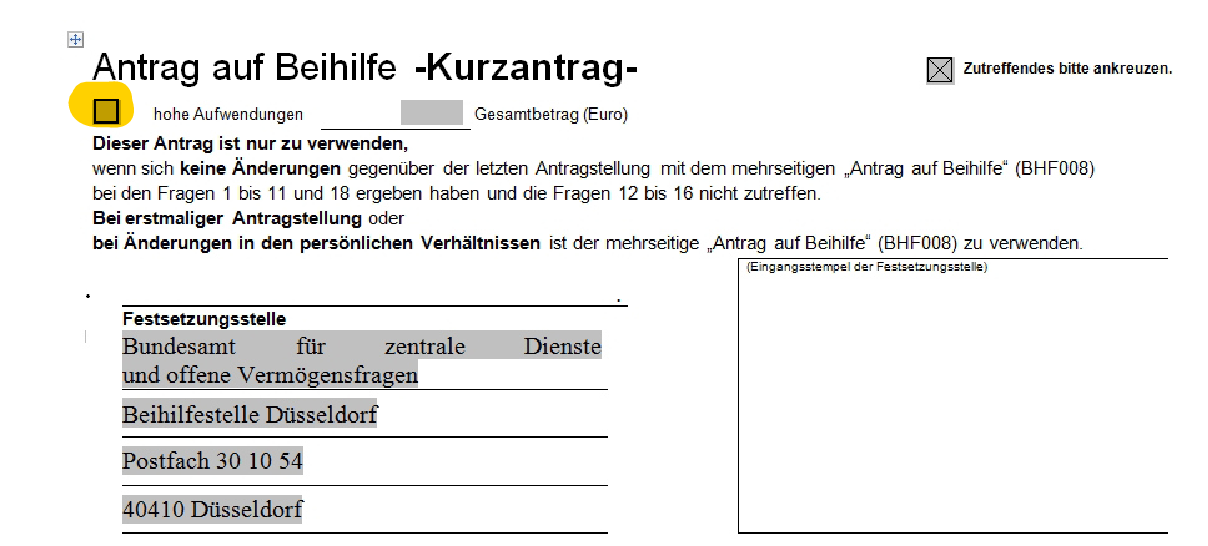 Re: Feld "Hohe Aufwendungen" auf Beihilfeantrag