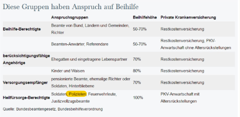 In einigen Ländern kann ein Polizeibeamter wohl auf seinen Anspruch auf freie Heilfürsorge verzichten, dann hat er aber Anspruch auf 50 % Beihilfe.