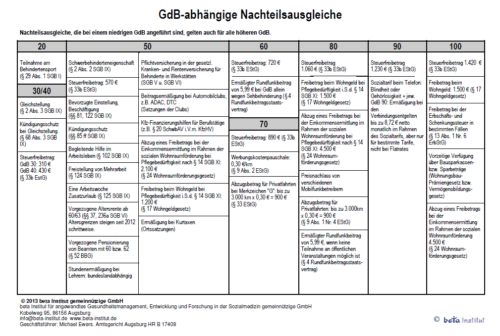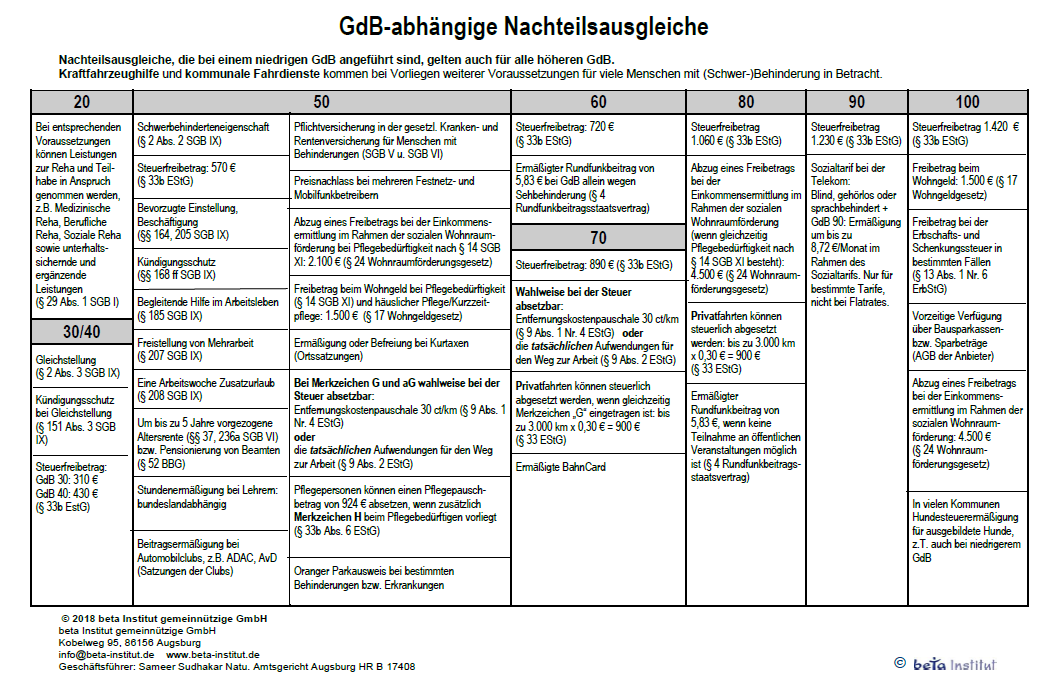 Der Grad der Behinderung (GdB) beziffert die Schwere einer Behinderung. Er ist also das Maß für die körperlichen, geistigen, seelischen und sozialen Auswirkungen einer Funktionsbeeinträchtigung aufgrund eines Gesundheitsschadens.