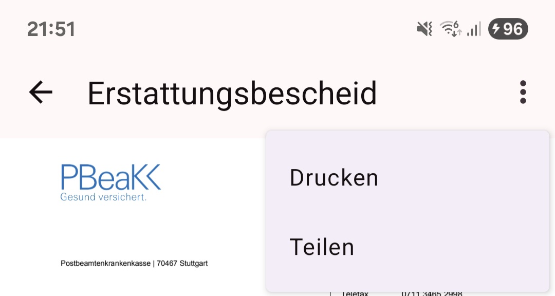 Habe heute mal die App genutzt und die Rechnungen eingereicht. In der App war die letzte Abrechnung noch als Anhänge drin. Bekomme ich die für mein Archiv irgendwie da raus, also kann man die Abrechnung dann irgendwie an den PC schicken um sie da zu speichern?