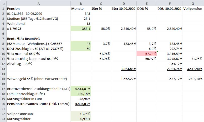 Ferner hab ich die Kürzung der Hochschuldienstzeiten nach Rechenbeispielen aus dem Internet eingebaut. Das trifft dann den höheren Dienst ab Endstufe A14.